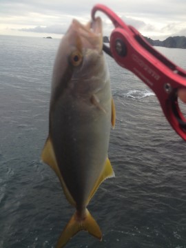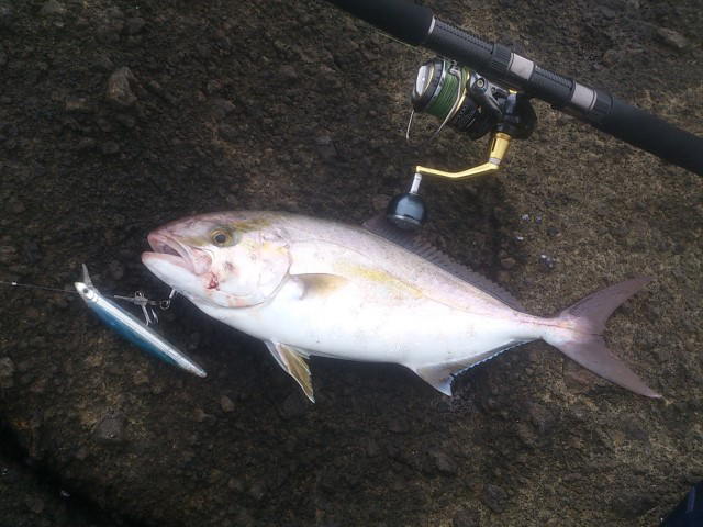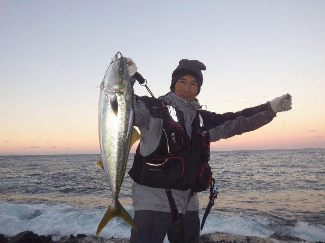 「夕方16時頃から沖にナブラ出てだんだん接近してきました!見事に千智がヒットさせてイナダゲットです~♪(^^)