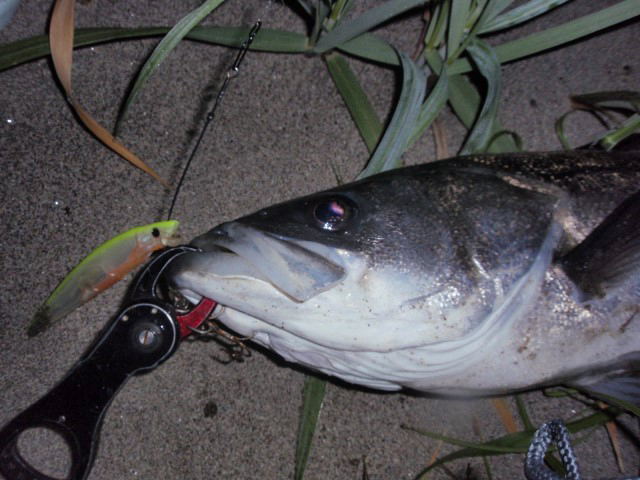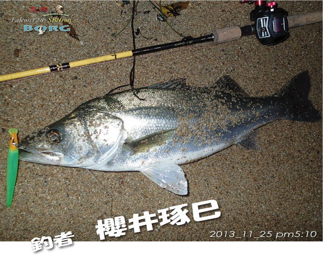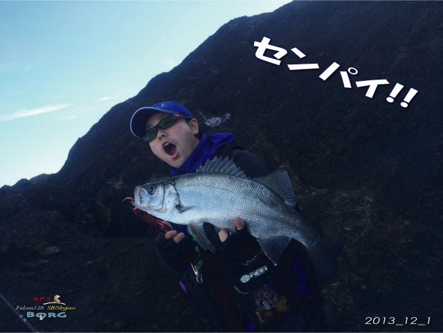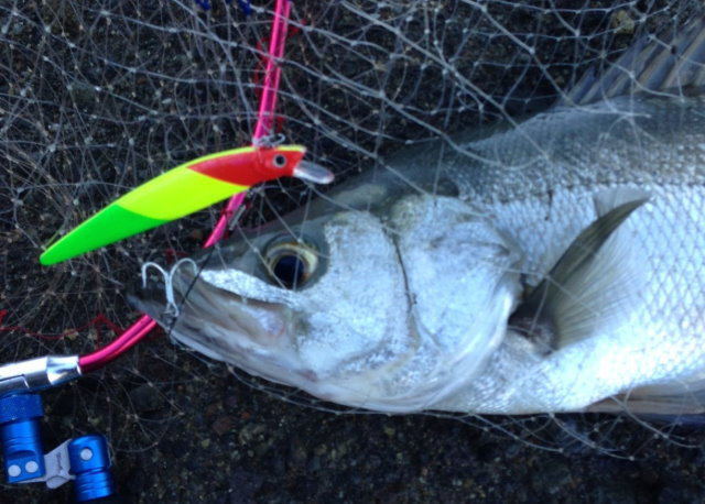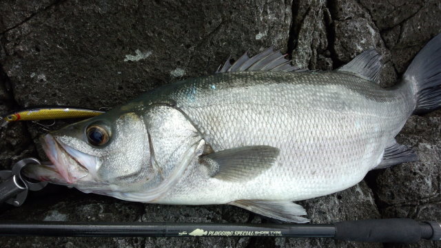 そして、待望の初ヒラスズキをクラッチランディングに成功しました!ボーグだからこそ取れた一本です!