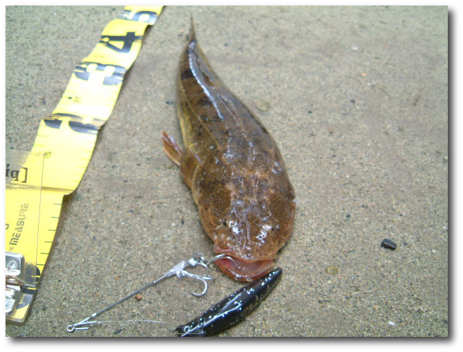 実釣は,秋の湾内。サヨリ,アジを意識し,シャローに目を向けているフラットヘッドフィッシュ。