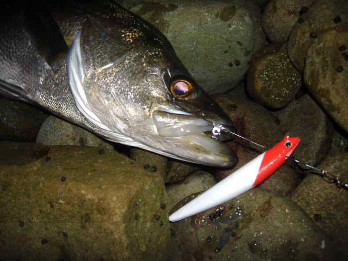 本日は、波も高く・・・ペンシルの威力が充分に発揮出来なかったのですが久々のシーバスに満足!
