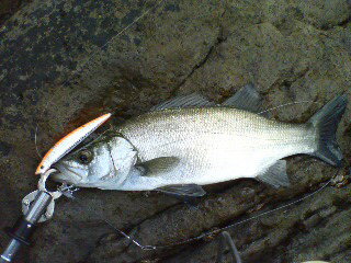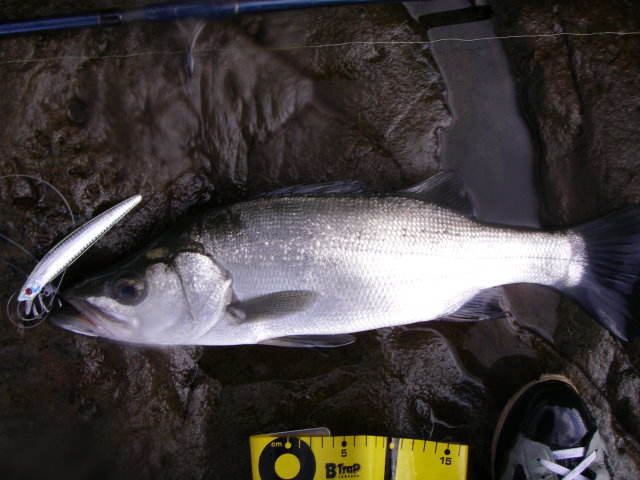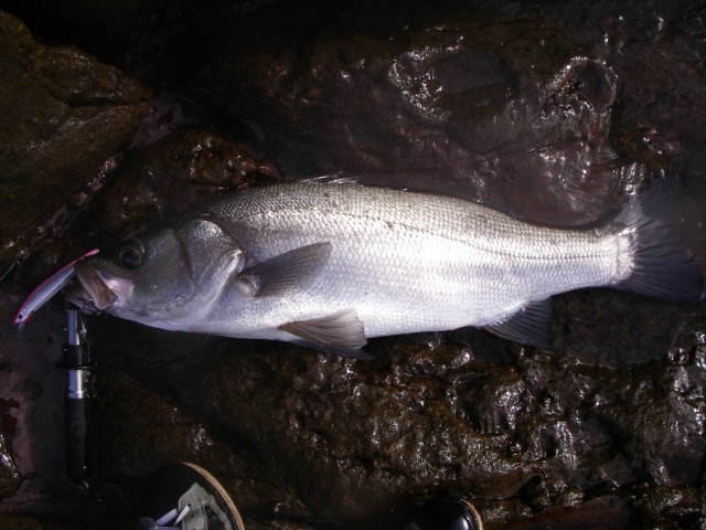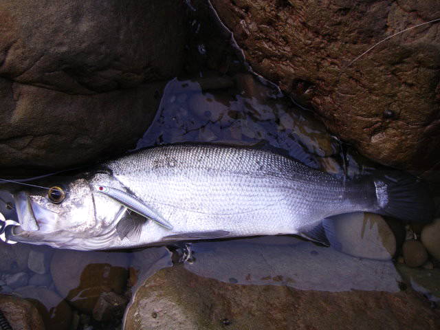 粘ってようやく出たのがこのヒラで、岩の際にキャストし一瞬フォールした後リーリングすぐにヒットです。