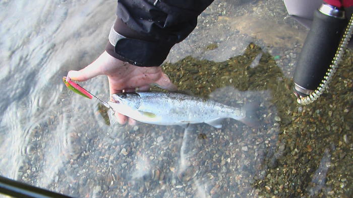 オスプレイの9センチボディーはサクラマスでの早い水流ポイントにも適合しますがその耐急流安定性が利点になったケースのようです。