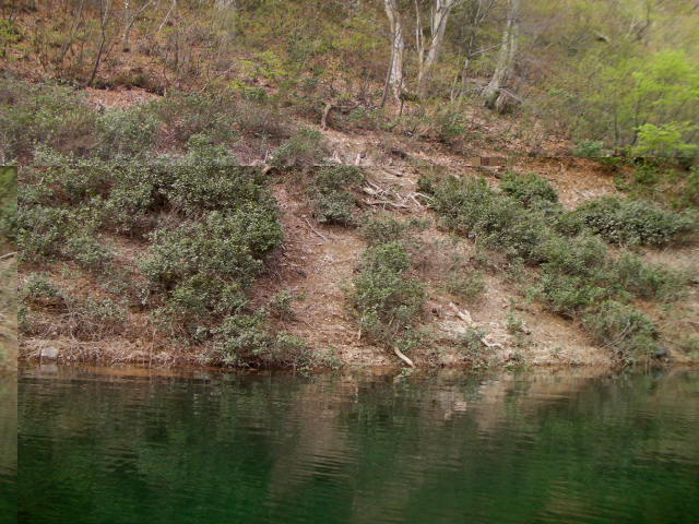 水位も下がり,イワナがつくブッシュは,はるか上です。