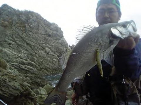 前日に荒木さんが単独釣行し、50cm前後のヒラスズキをキャッチとの連絡もらい、
