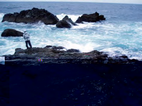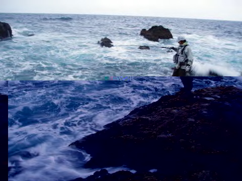 ファルコンのペンシルポッパー・イワシカラーをセットし沖のサラシにキャストしアクションをつけながら足元までひいてくる。