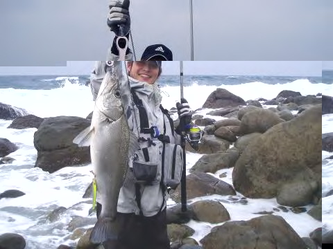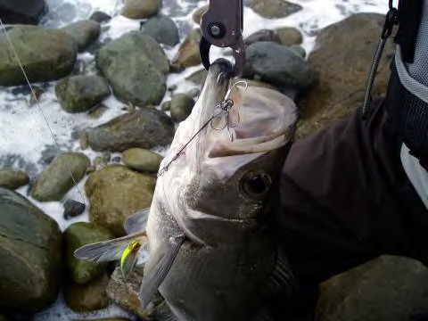 リーダーを握り抜き上げてみると、50cm前後の平鱸だった。