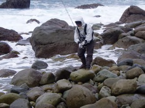 波のタイミングを見ながら、サラシが広がるのを待ってキャストしてみる。