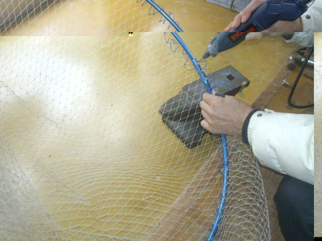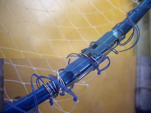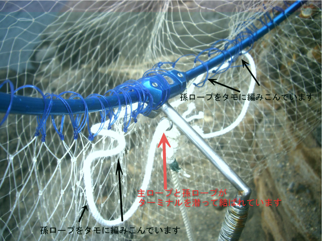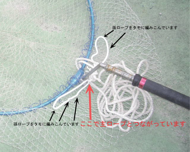 今回はロープも主ロープに派生させた孫ロープをタモ網に編み入れておきました。