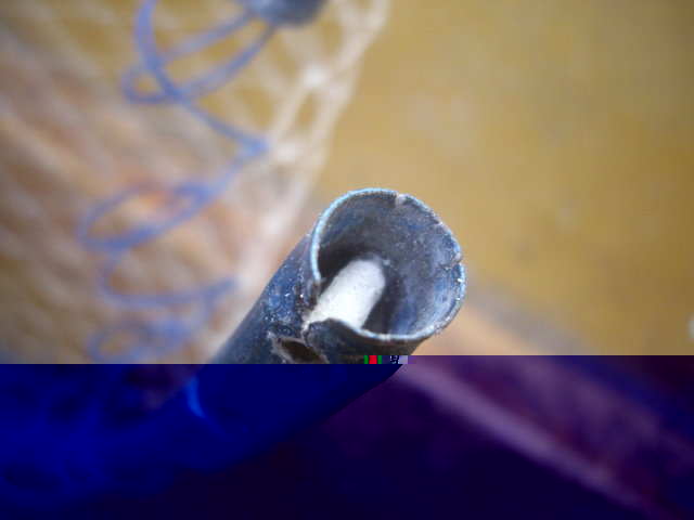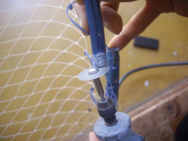 その穴にステンレスの一ミリ径くらいの針金を入れます。