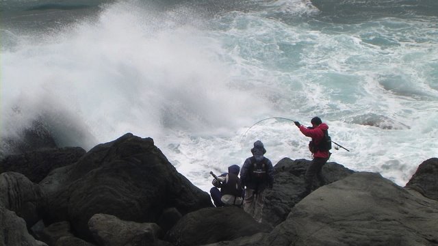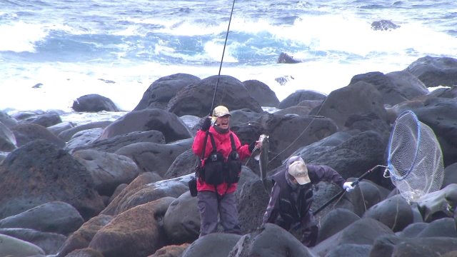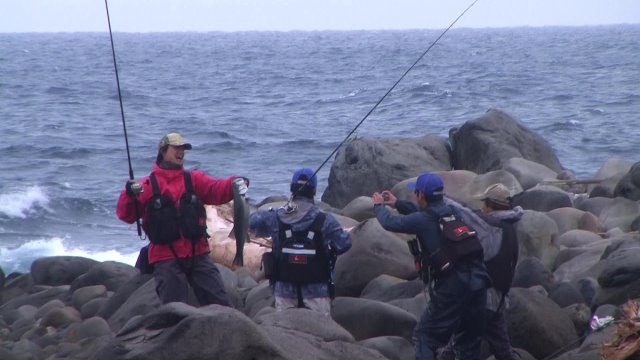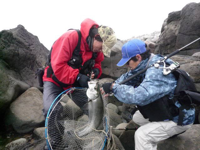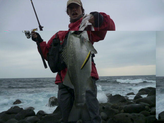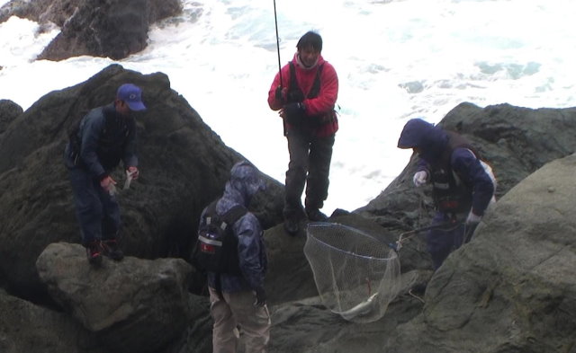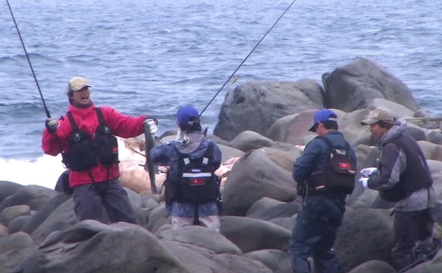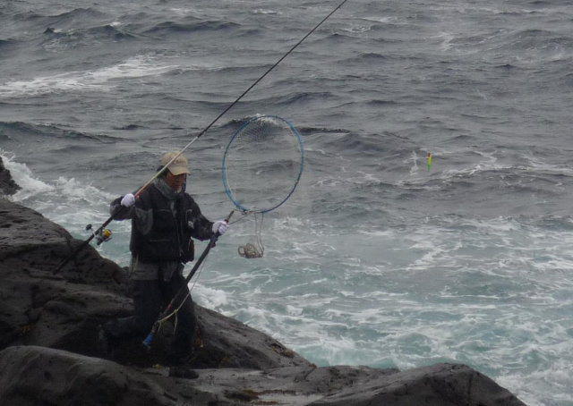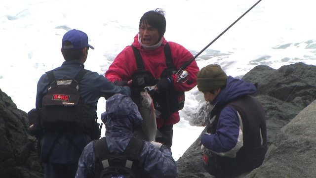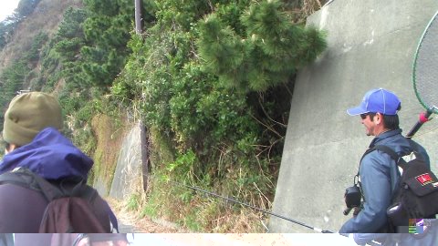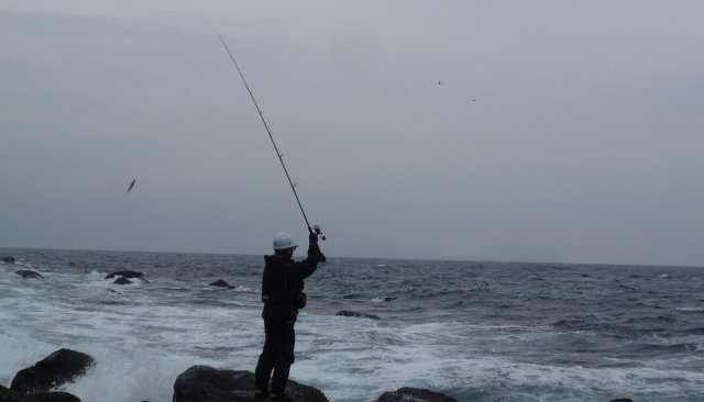 声は届かない磯。ヒットにまず気づいたのはkenさん。