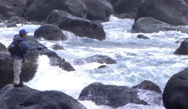 払い出してゆく流れのどこにボーグルアーを落とし、どう引いてくるのか?