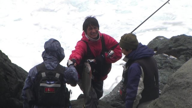 釣りでのお祝いの握手は初めてですね!慶太さん?